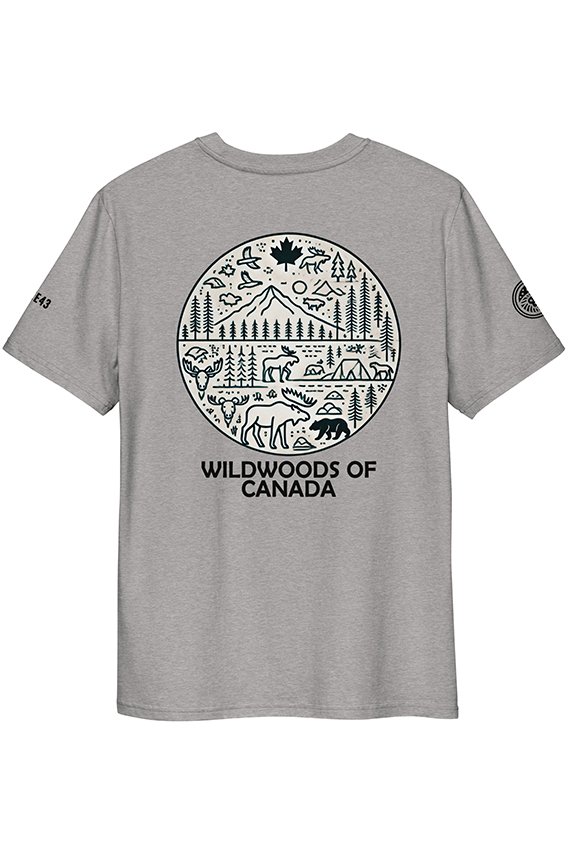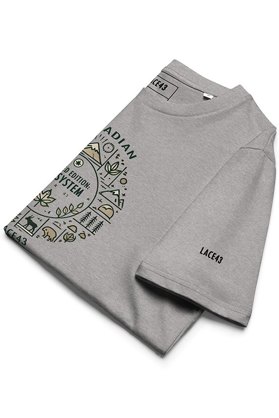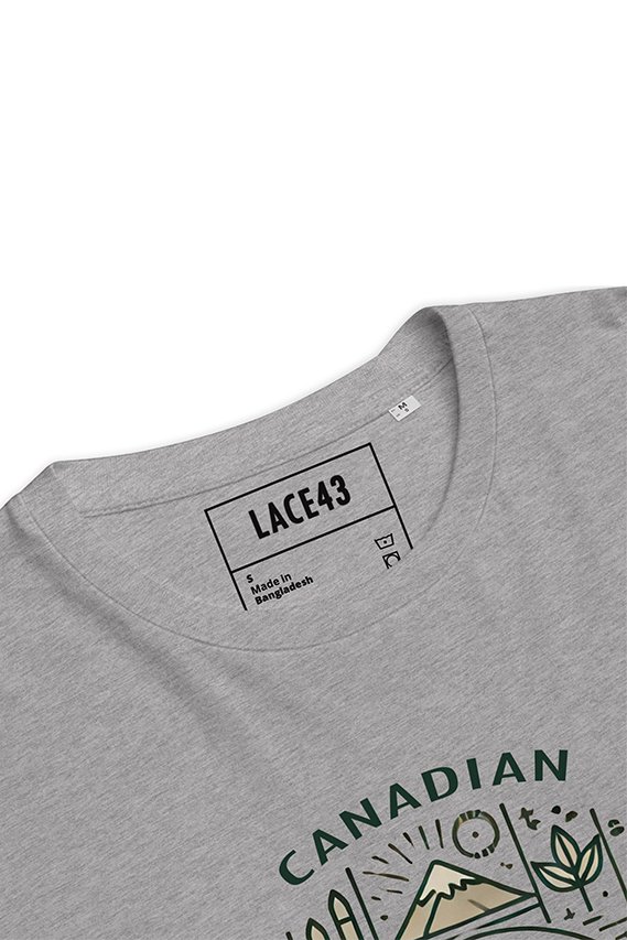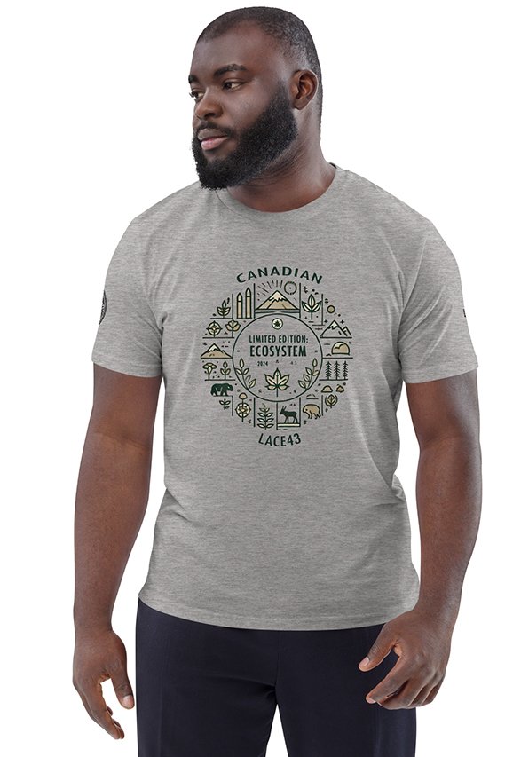 Camiseta exclusiva de LACE43 inspirada en el ecosistema canadiense, confeccionada en algodón orgánico. Con diseño frontal y trasero que captura la esencia de la naturaleza salvaje, y el logo de LACE43 en ambas mangas. Estilo y sostenibilidad en una prenda única.