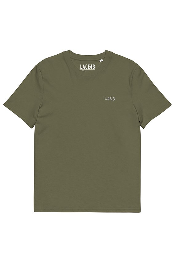Camiseta unisex con bordado L4C3 en el pecho, confeccionada con algodón 100% orgánico. Suave, cómoda y respetuosa con el medio ambiente, es una prenda esencial para el día a día.