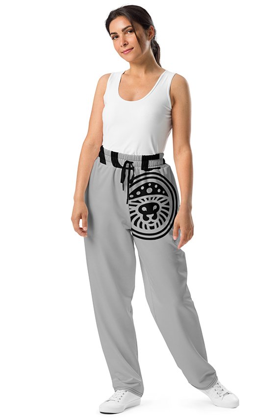 Pantalón de chándal unisex en color gris con corte de pierna ancha. Con el icónico logo de LACE43 en la parte frontal en grande, este jogger ofrece comodidad y estilo audaz para el día a día.