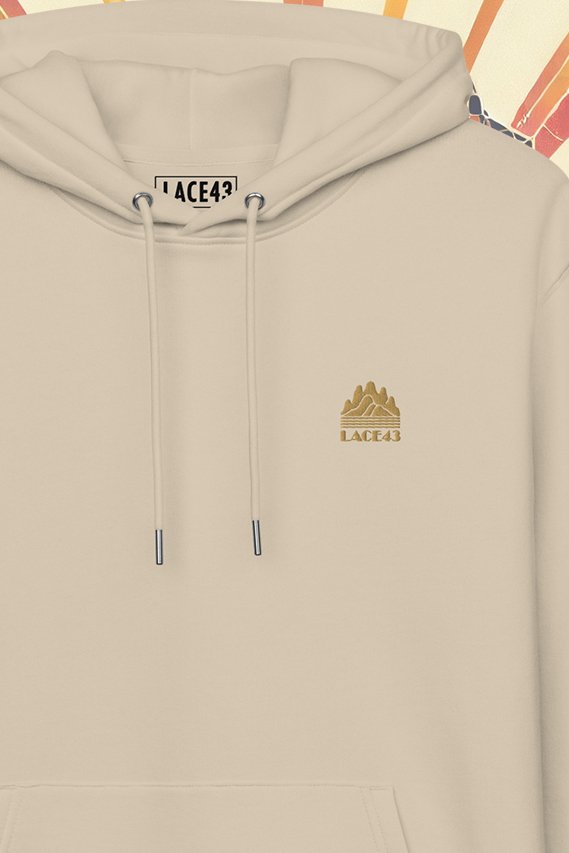 La sudadera con capucha «Montserrat» rinde homenaje a las icónicas montañas de Montserrat con un bordado único en el pecho y el logo de LACE43. Disponible en Azul Marino, Blanco, Negro y Arena, combina estilo, comodidad y sostenibilidad con materiales orgánicos y un diseño inspirado en la esencia de Barcelona.