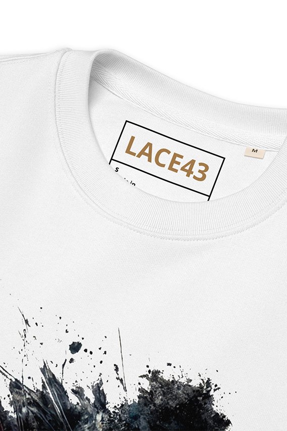 Sudadera Electric Fade: Una prenda que fusiona el arte del rock con la sostenibilidad. Con impresión frontal de un diseño diluido y el logo de LACE43 bordado en la manga, está confeccionada en algodón orgánico para un estilo único y responsable. ⚡🎸🌿