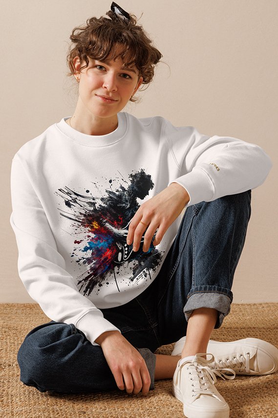 La Electric Fade es una prenda que combina la fuerza y la intensidad del rock con la delicadeza de un diseño artístico. Inspirada en la libertad y el movimiento que define este género, esta sudadera captura la esencia de la música y la moda consciente en una sola pieza.
