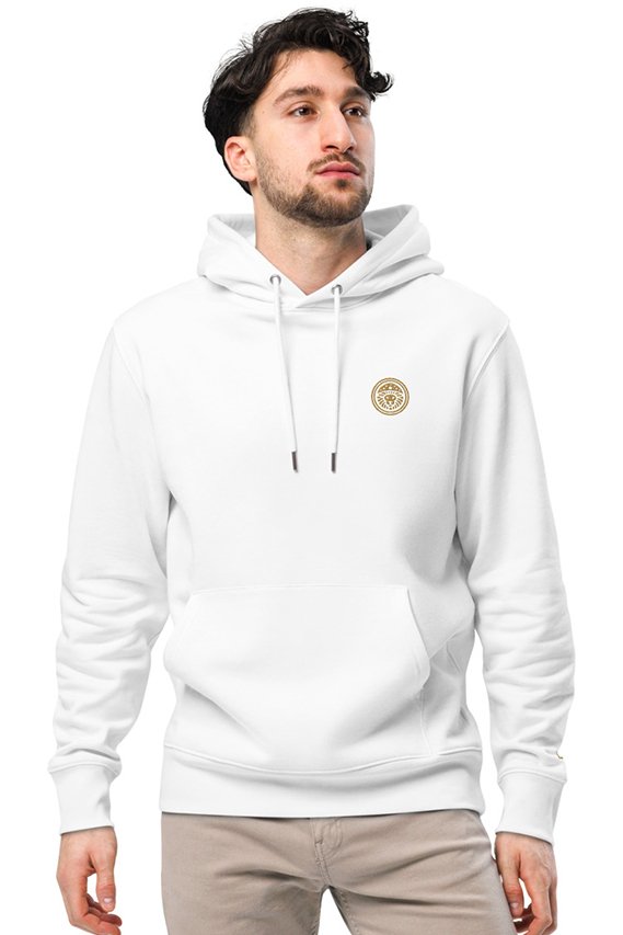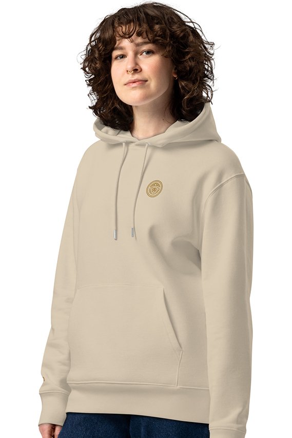 - La sudadera está hecha de un 85% de algodón orgánico certificado por GOTS (Global Organic Textile Standard), lo que significa que el algodón se ha cultivado sin el uso de pesticidas ni productos químicos dañinos, preservando la salud del suelo y el ecosistema.