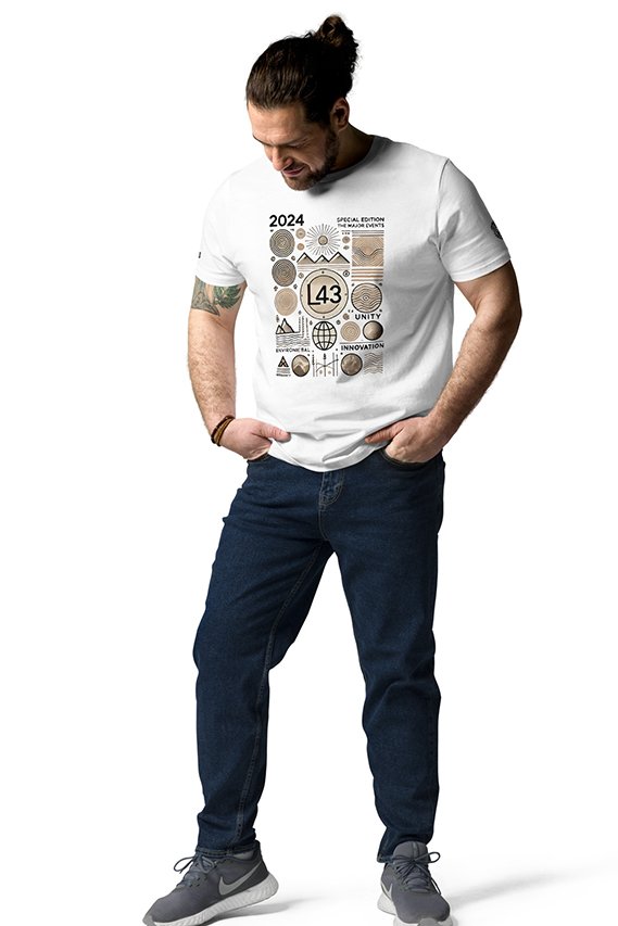 Camiseta de edición limitada de LACE43 para 2024, confeccionada en algodón orgánico y con un diseño exclusivo que refleja el espíritu del año. Corte unisex, materiales sostenibles y un estilo icónico para quienes buscan moda consciente y con impacto positivo.